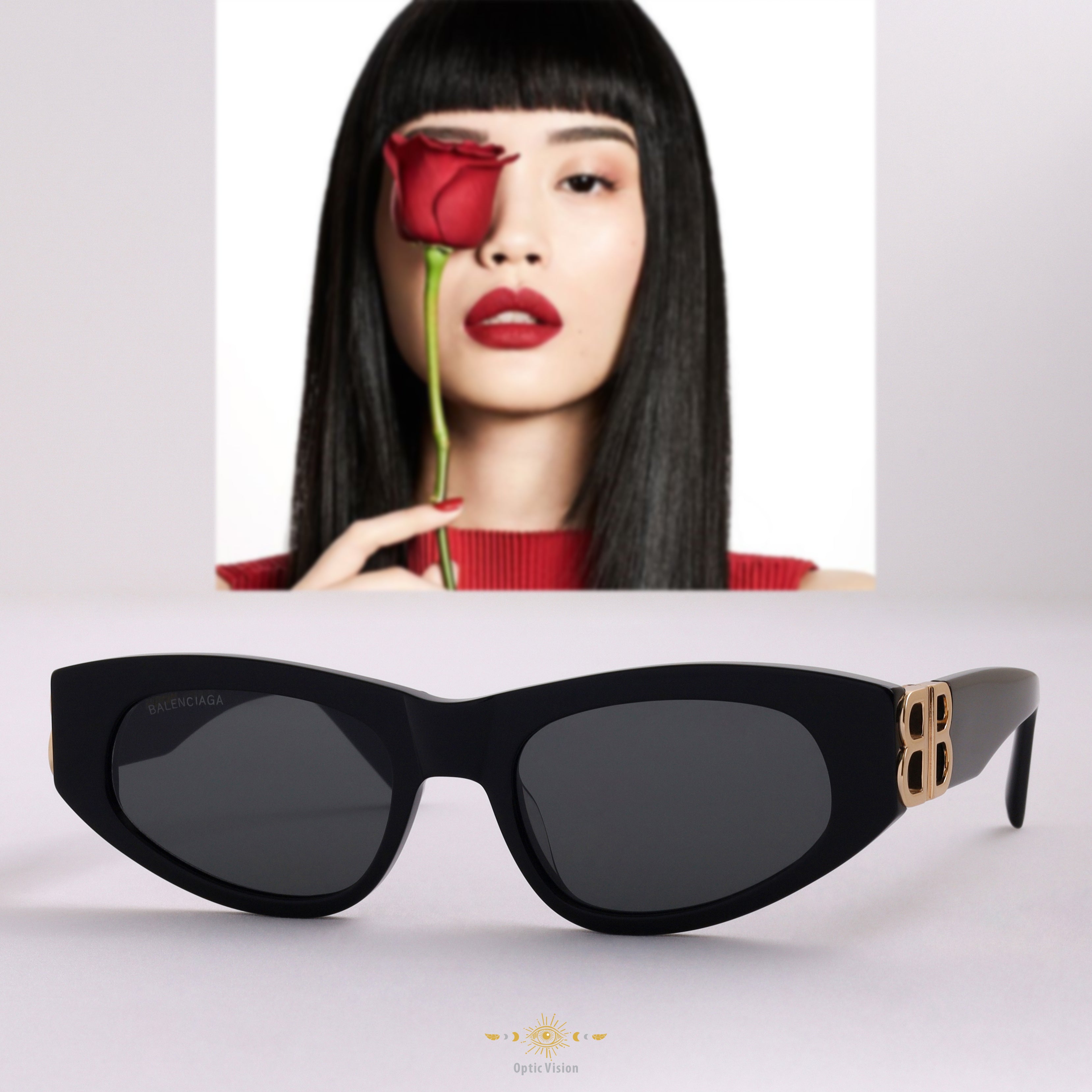 - Gold toned BB logo integrated on left temple